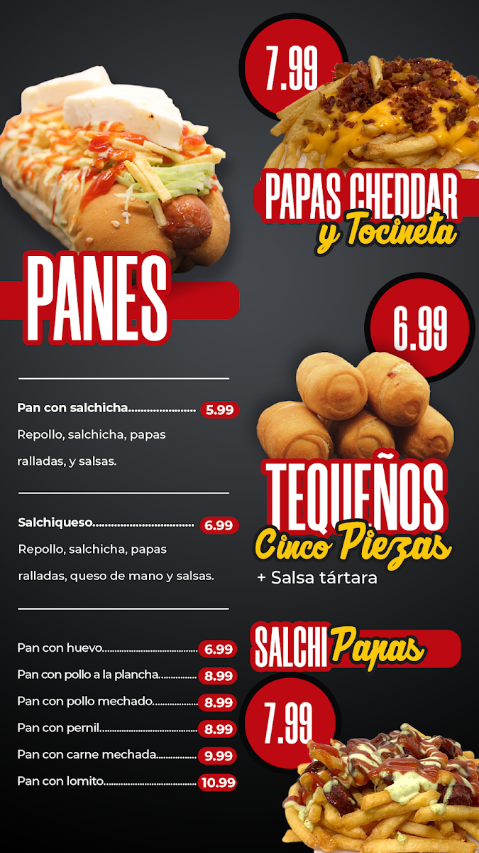 Lomito , Pollo lechuga tomate , Papa rayadas , Jamón , Tocineta y Queso Rallado